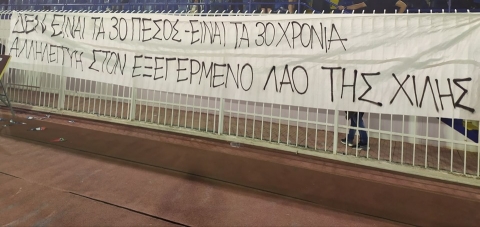 Με το πανό που ανέβηκε στον κυριακάτικο αγώνα, θέλουμε να εκφράσουμε την αλληλεγγύη μας σε όλους τους εξεγερμένους της Χιλής που ρισκάρουν την κανονικότητα τους και την ασφάλεια μιας επίπεδης και μίζερης ζωής για να διεκδικήσουν με αξιοπρέπεια και μαχητικότητα τα αυτονόητα.